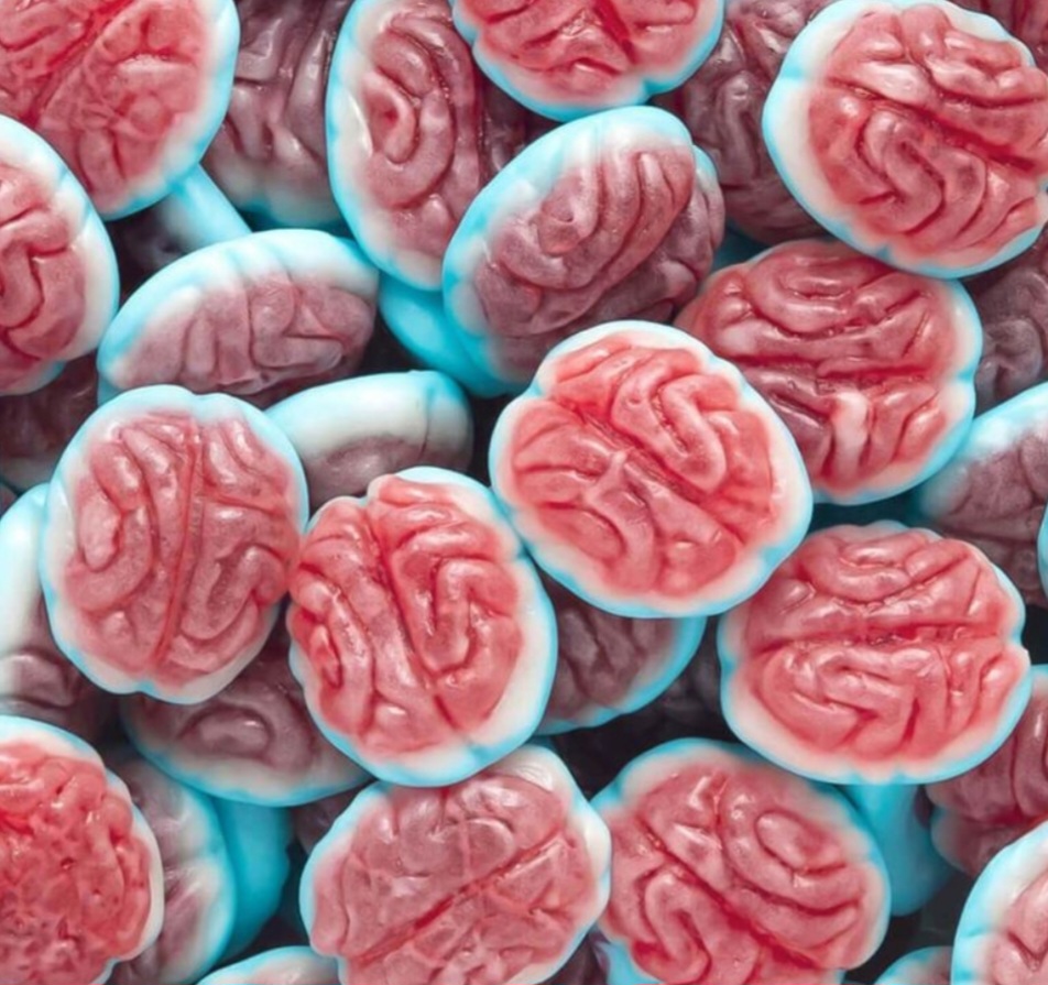 Doces originais em formato de cérebros, recheados  com um intenso sabor de morango  e uma textura gelatinosa incomparável. Esta guloseima única será  a estrela das suas festas de Halloween  ou poderá ser apreciada durante todo o ano .
